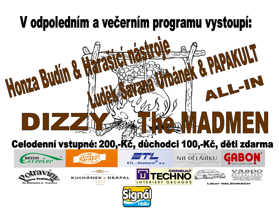 Celou soutěž vždy tradičně doprovází bohatý kulturní program. I letos tomu nebude jinak. Od brzkých odpoledních hodin se můžete těšit na Honzu Budína a jeho Harašící nástroje, kterého není třeba představovat. Stejně jako Papakult s Luďkem Savanou Urbánkem je nám dobře známý. Novinkou pak bude kapela ALL – IN. Pro mnohé název neznámý, ale tahle parta skvělých muzikantů je z blízkého okolí našeho PoŠuKova. Tak se těšíme, jak to na Dělňáku rozjedou. U kapely DIZZY můžeme slíbit velký hudební zážitek a vše vyvrcholí kapelou The Madmen, což bude parádní rockovej nářez. Myslím, že je na co se těšit.