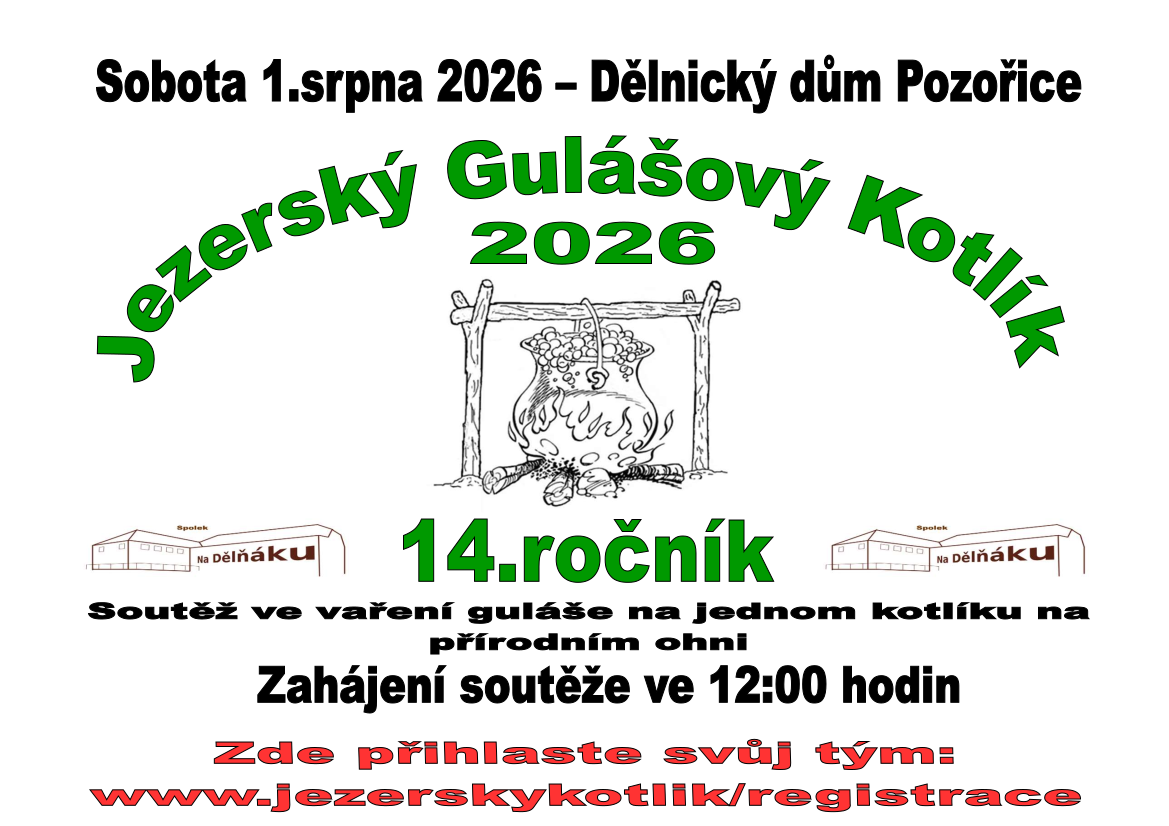 Dne 2. srpna 2025 se nám podařilo uspořádat 13. ročník oblíbené gastronomické soutěže ve vaření guláše na otevřeném ohni v jednom kotlíku – Jezerský gulášový kotlík.